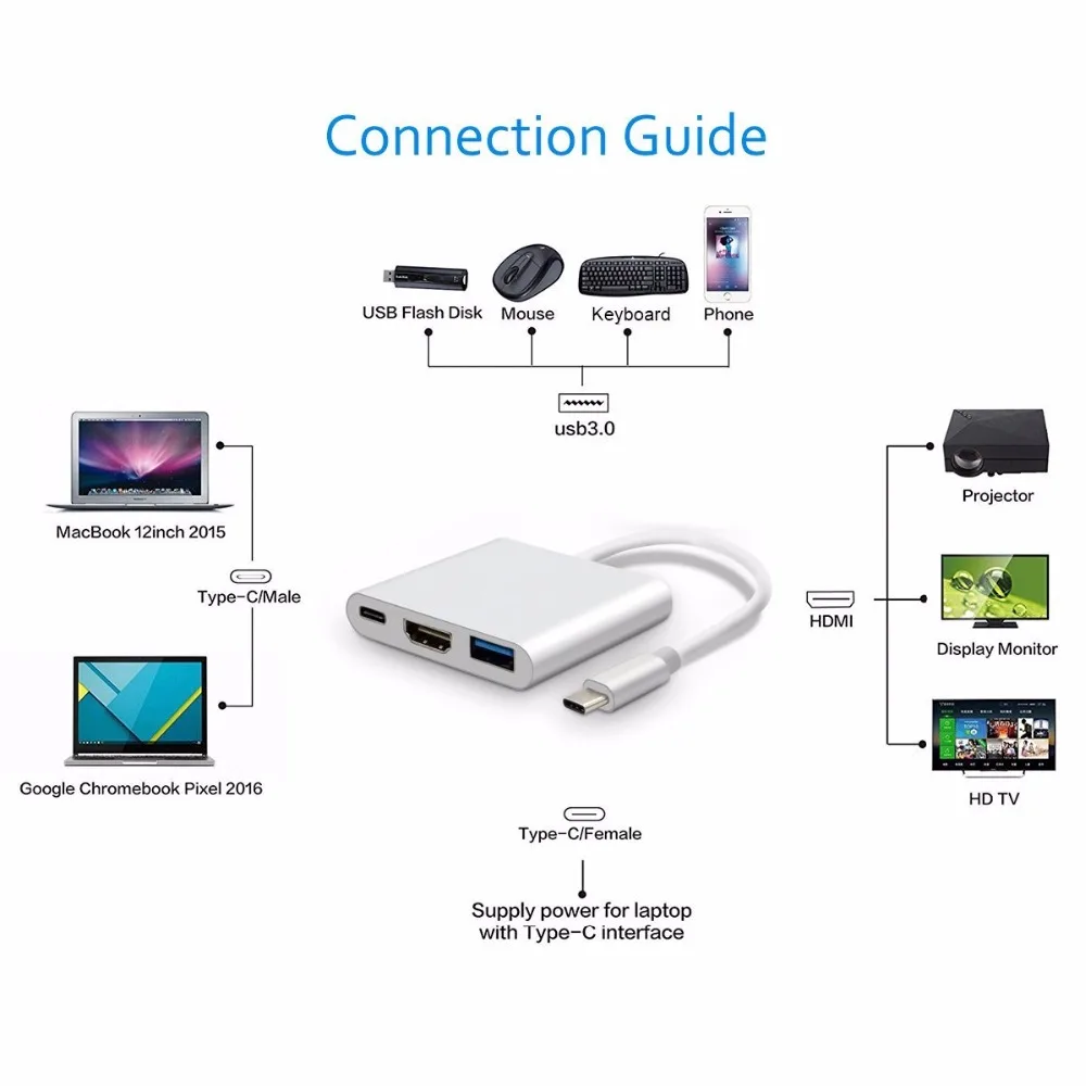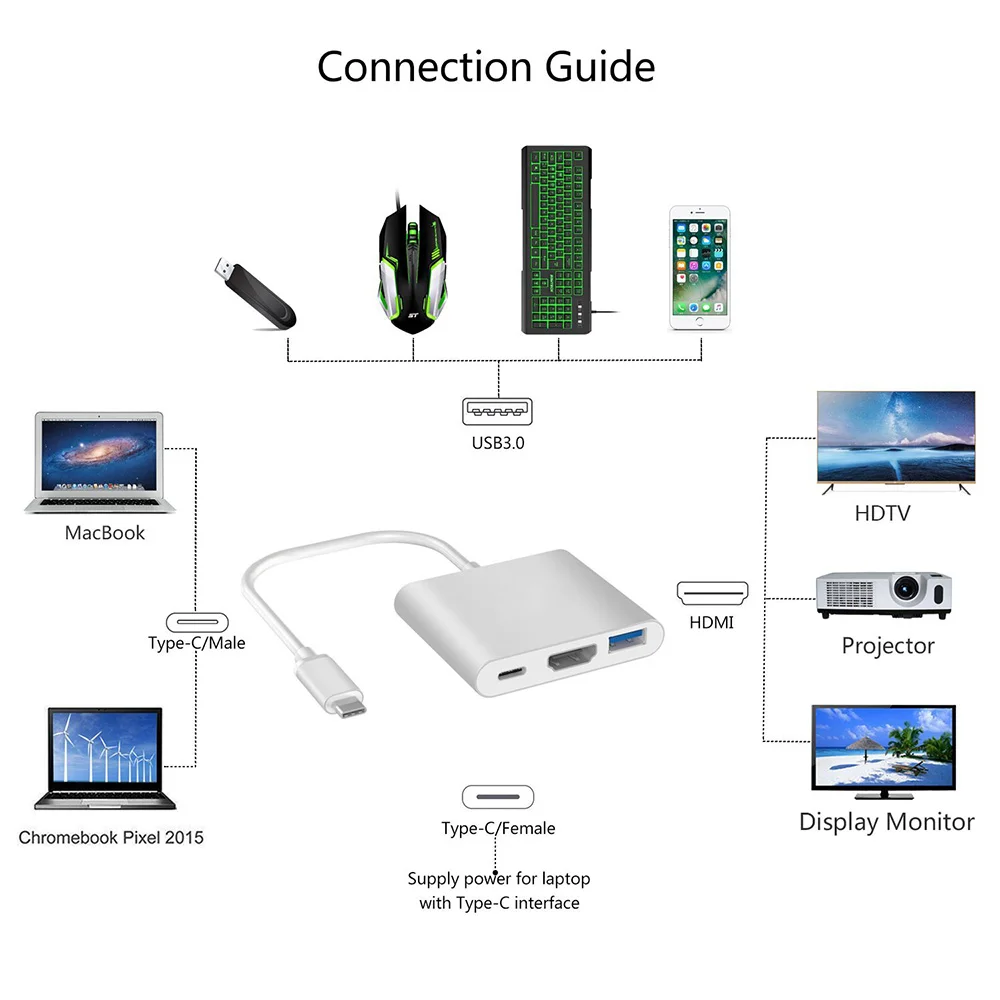 Connector Type 1:High Speed Type-C to HDMI USB 3.0