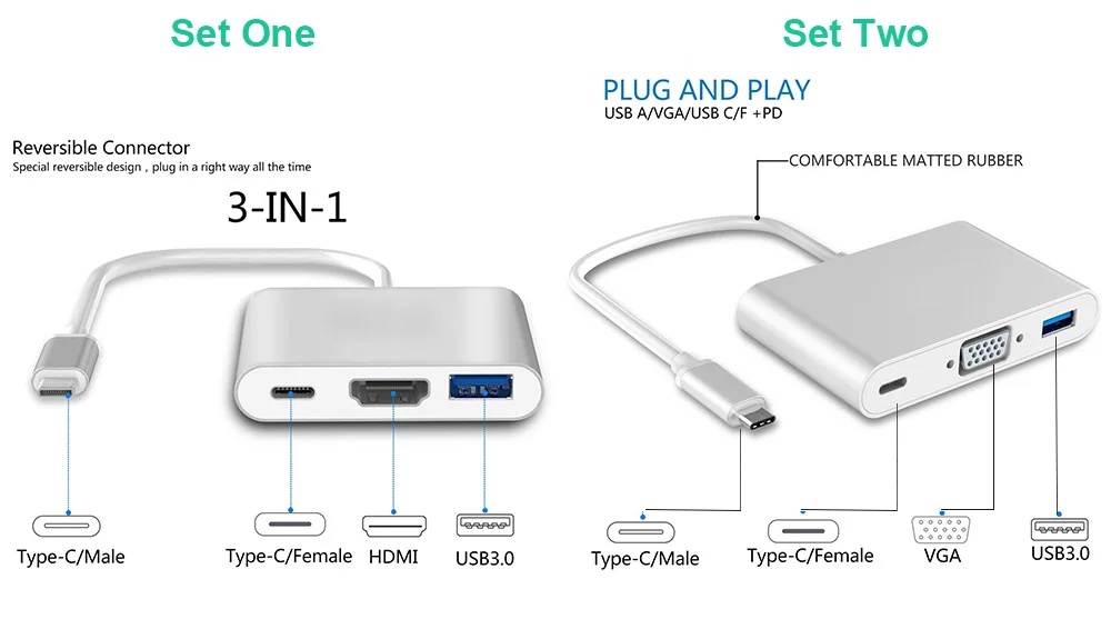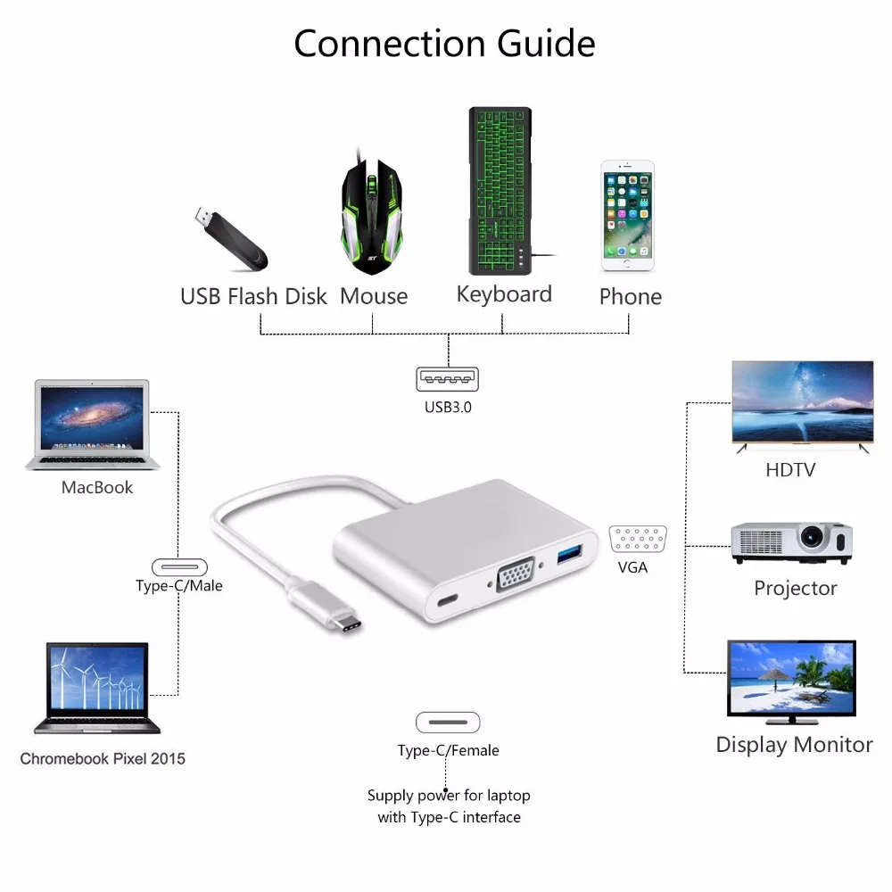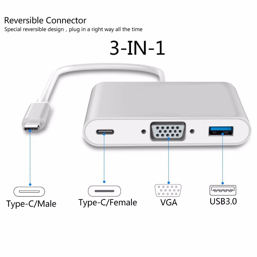 Connector Type 2:High Speed Type-C to VGA USB 3.0