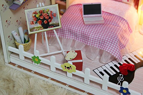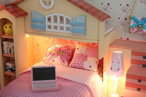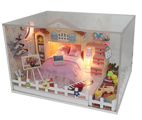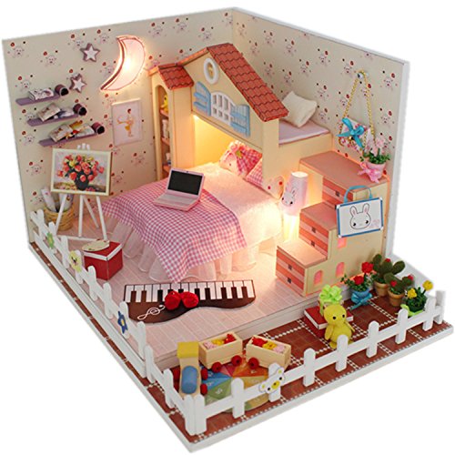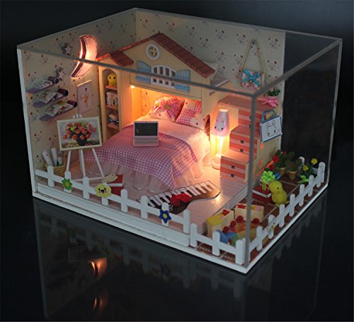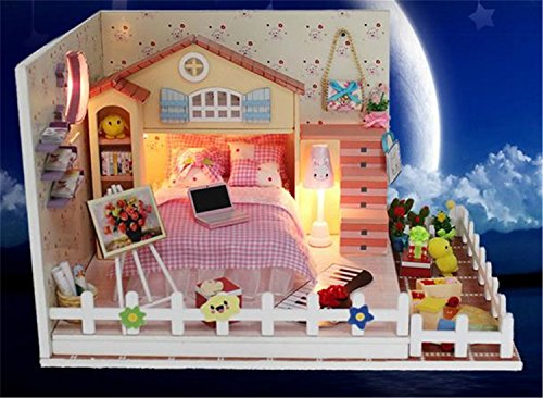 -. Title : "Moon Bay" DIY LED Dollhouse Miniature House Kit with Dust Cover DIY House Gift Toy Doll House