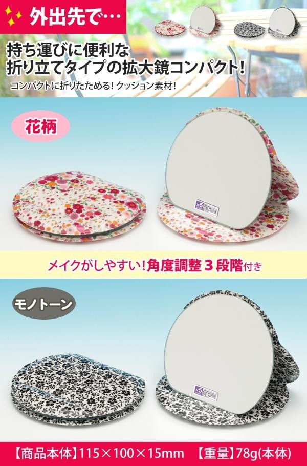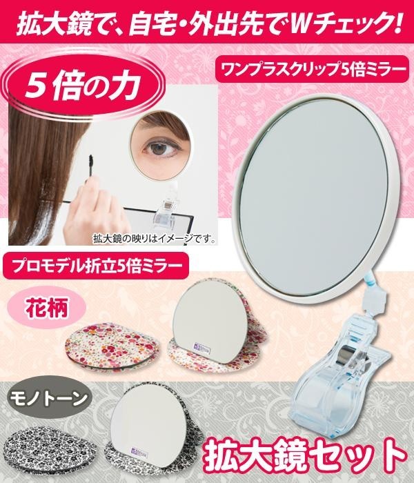 | 普段お使いのミラーや洗面台などにワンプラスすると大変便利な5倍拡大鏡と、持ち運びに便利な折り立てタイプの5倍拡大鏡のセットです。細部まで大きく見えるので、角栓・シミ・しわ・お肌のお手入れに最適♪ |