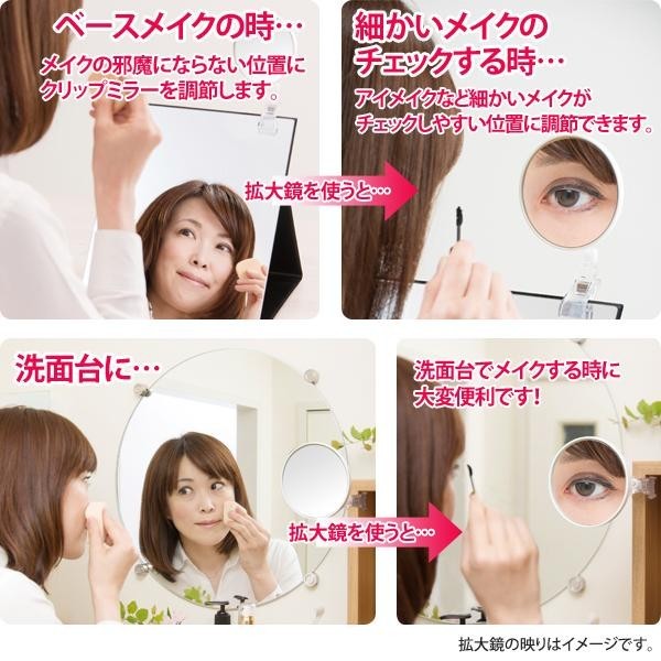 | 素材・材質 | ワンプラスクリップ5倍ミラー/ミラー枠:ABS樹脂、ミラー:ガラスミラー、両面テープ:ウレタン、クリップ:ABS樹脂・ポリアセタール・ポリカーボネート・スチール・エラストマー プロモデル折立5倍ミラー/本体:綿、ミラー:ガラスミラー |