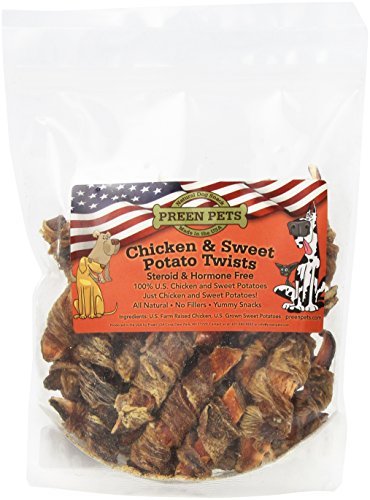 -. Feature : All-Natural, preservative-free, additives free, wheat free, hormones free, steroids free / Sweet potato sticks in dried chicken breast furls made of 100-Percent chicken and sweet potatoes / Made in the USA