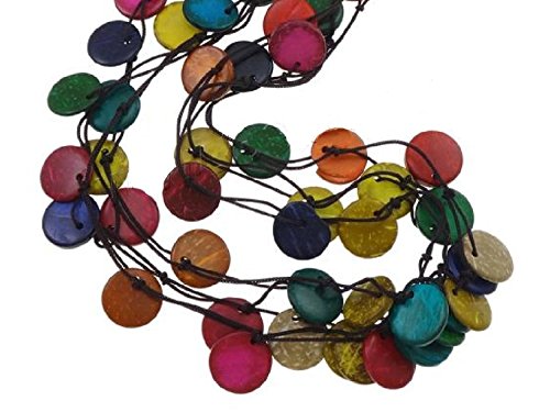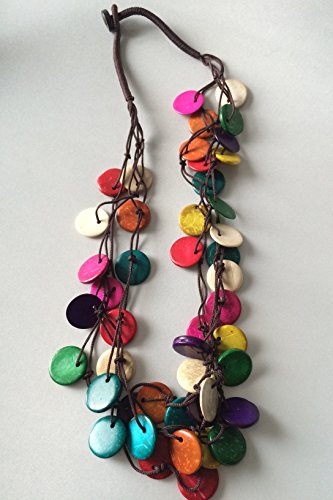 COLORFUL BEAD NECKLACE - 24 long x 1 high x .2 deep. Loop clasp. Multi-colored coconut shell beads. Feels like Wood but lighter around the neck. Three tiers. This exquisite rainbow necklace is the ideal gift to brighten someone’s day. A great birthday or any occasion gift set.