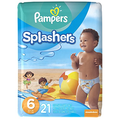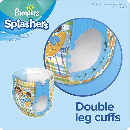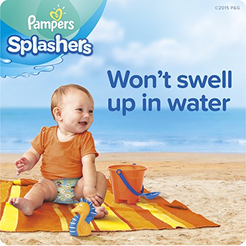 Perfect for pool time or the beach! Your little baby can splash happy without you having to worry about a soggy diaper. Pampers Splashers Swim Pants are specially designed for pool or water time. They provide protection against leaks in the water but won't swell like regular diapers. Their tear-away sides make it easier for you to change them, and they’re also super stretchy to provide a snug fit in the water. Plus, the double leg cuffs provide protection from leaks. These swim diapers are ideal for the beach or pool time. Pampers Splashers Swim Pants come in sizes 3–4, 5, and 6.Feature