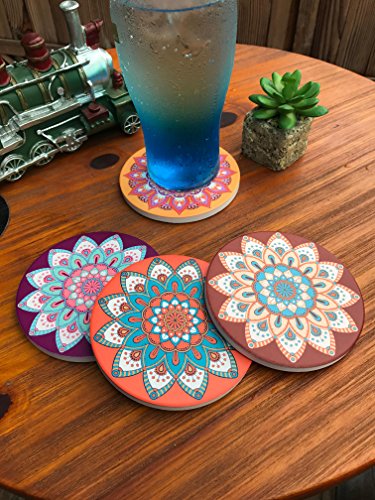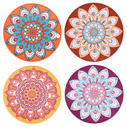 -. Feature : Bohemian,Set of 4 Coasters Included,Different 4 Pictures a Set,4.25-inch in Diameter. / Made of Absorbent Ceramic Stone and Absorb Vapors Come From Hot or Cold Beverage,Will Never Stick to The Bottom of your Bottles or Glasses,Any Liquid will be Absorbed into the Coasters Leaving the Surface Dry. / Cork Backing to Further Protect Furniture and Office Tabletop. / High Quality Finish Ceramic Coasters,Also Environmental,No More Cheap Cork Coasters,Fits all Cups, Mugs, Bottles, and Beverage. Makes them an excellent Bar or Party tool and accessories. Great conversation starter for party and entertaining. / Beautiful Crafts,A unique and practical gift. Great for Housewarming, BBQ's,Valentine's, Birthday's, Christmas, New Year's, Mother¡¯s Day, Father¡¯s Day, Novelty Gift, and any Gathering.