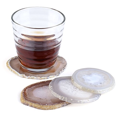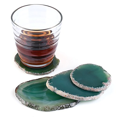 -. Title : JOVIVI Set of 4 Agate Coaster Cup Mat Blue Natural Sliced Dyed Agate Beverage Coasters for Drinks Gift 2.95 Inches - 3.15 Inches/3.15 Inches - 3.54 Inches