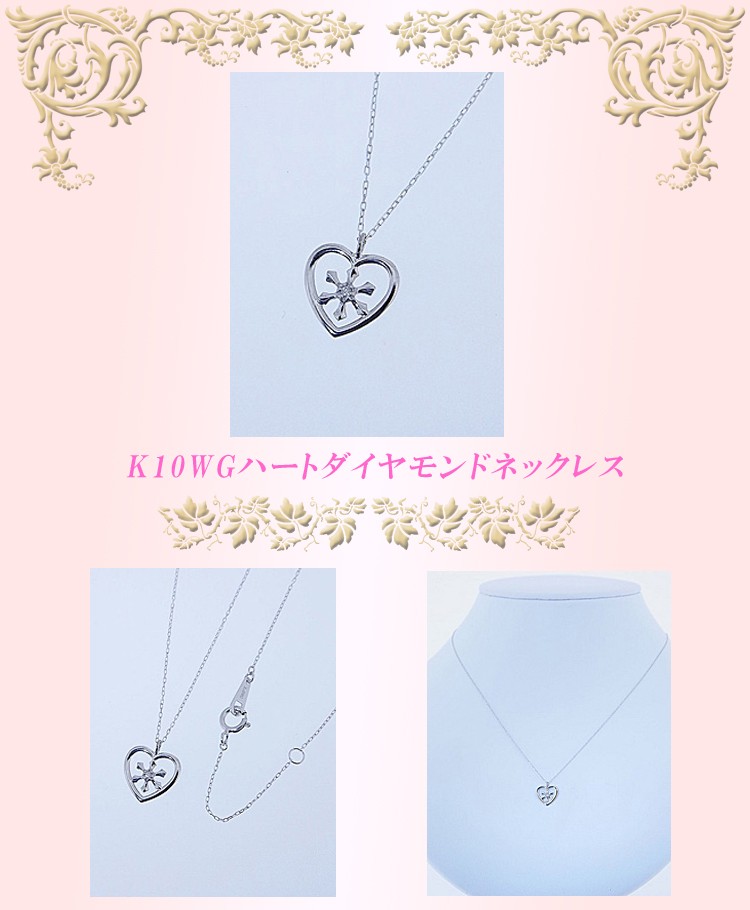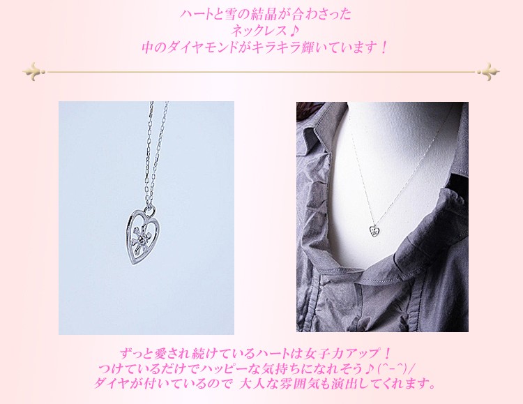 商品説明 ハートに雪の結晶を合わせたホワイトゴールドのダイヤモンドネックレスです。
