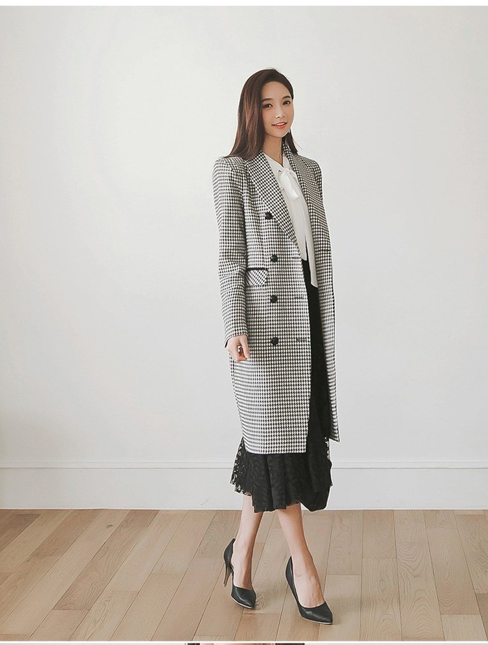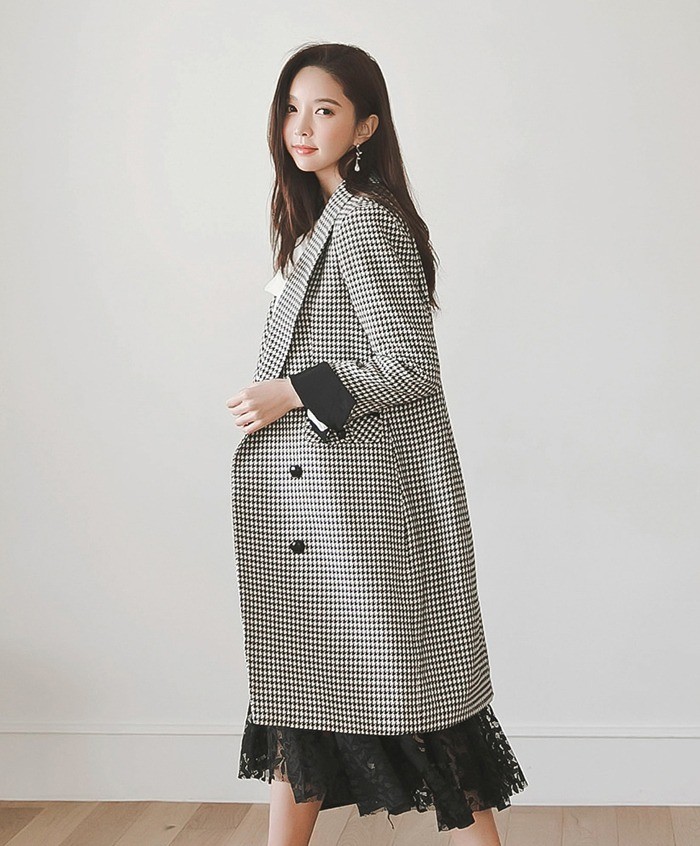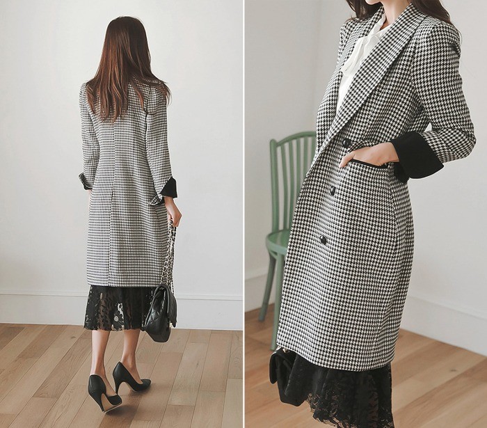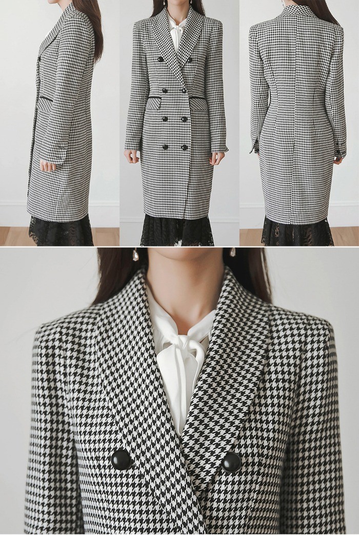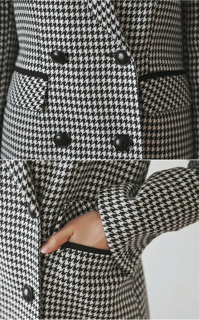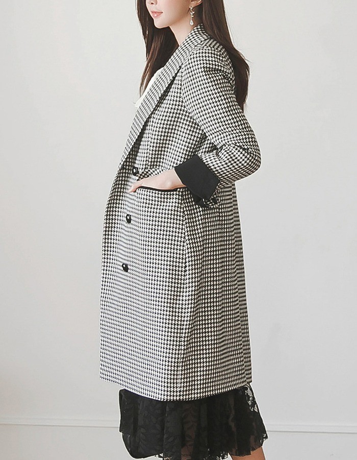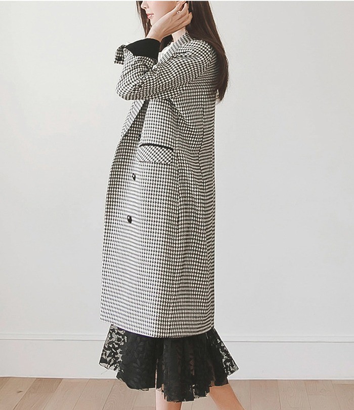 商品名:ジャケット ロング丈 チェスターコート 千鳥柄
