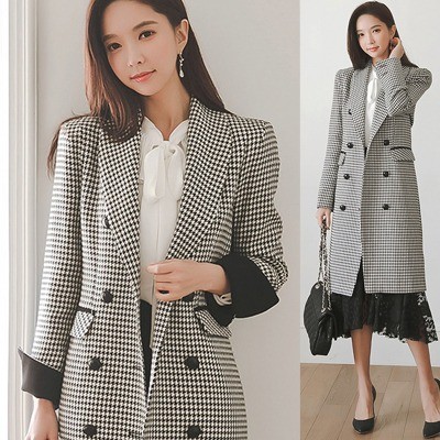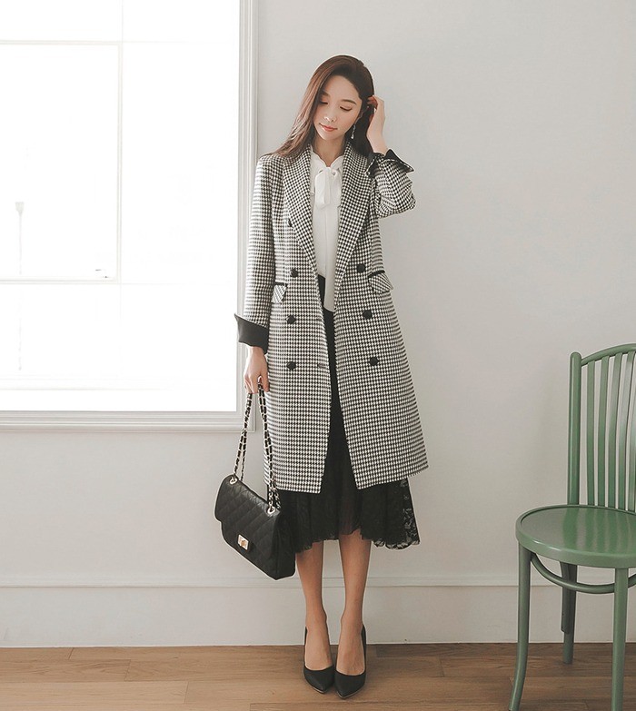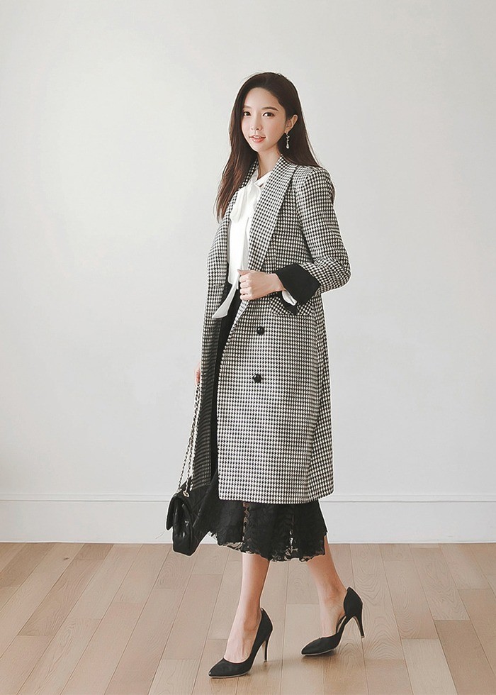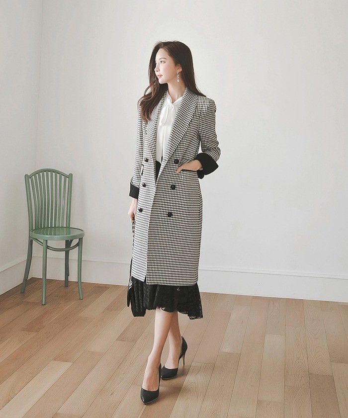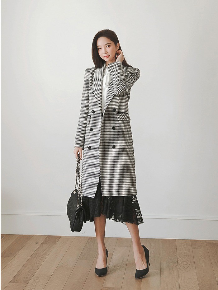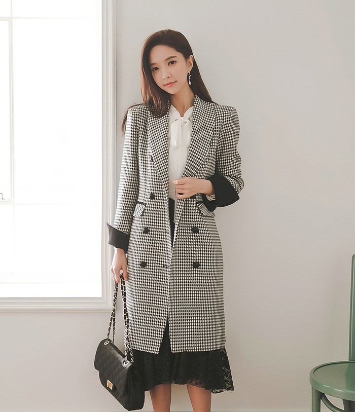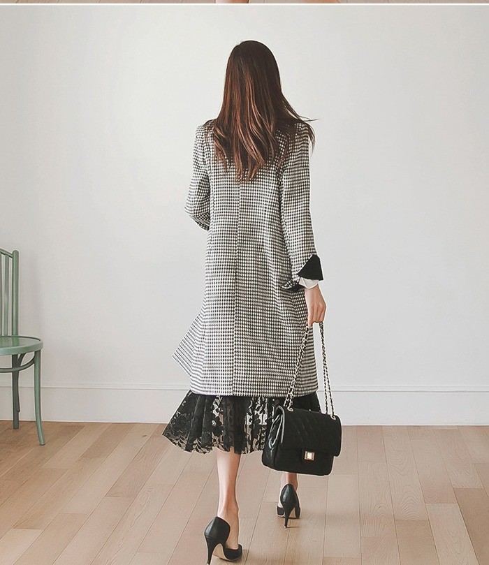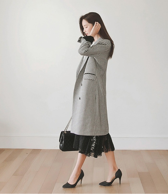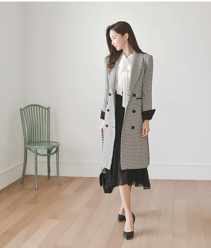 商品名:ジャケット ロング丈 チェスターコート 千鳥柄