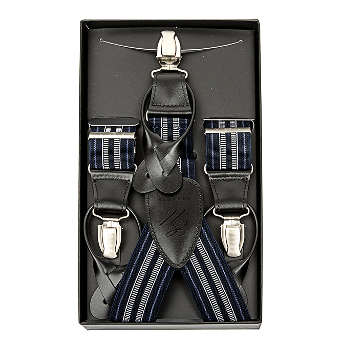 네이비 세로라인 천연가죽 멜빵(서스펜드)