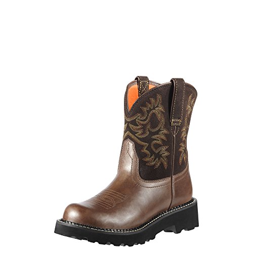 Studio : Ariat Publisher : Ariat Binding : Shoes Product Description Ariat Boot Co. Four Layer Rebound (4LR) Technology offers Ariat quality comfort at an exceptional value. A 4LR footbed, featuring EVA cushioning, is combined with a moisture wicking sock liner and a metatarsal support pad to maintain all-day comfort and support. This Ariat Fatbaby boot has a smooth brown leather foot under a fancy stitched 8" shaft. Taped side seams. Single stitched welt. 1 1/2" heel. Round toe. Imported. 0