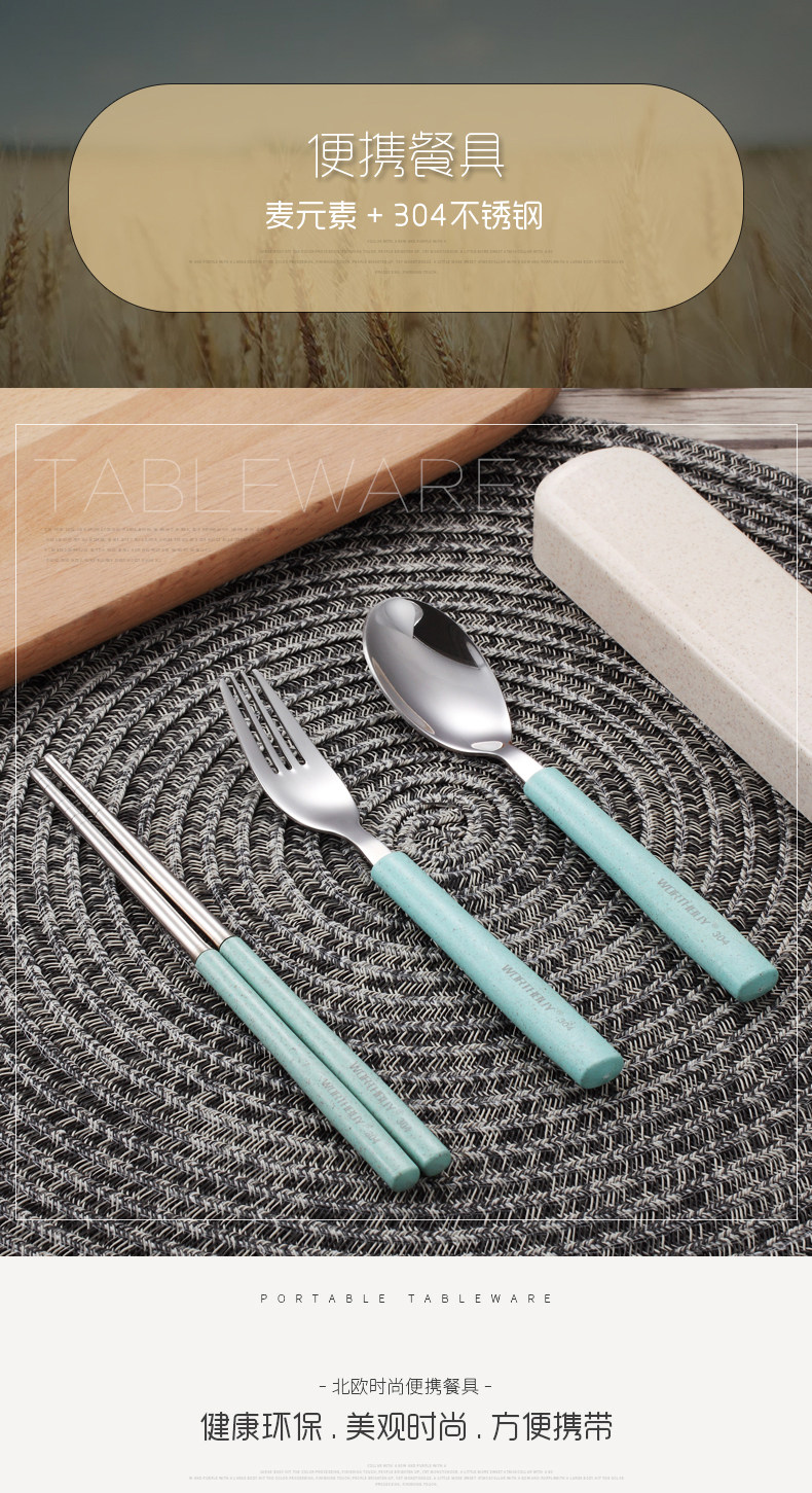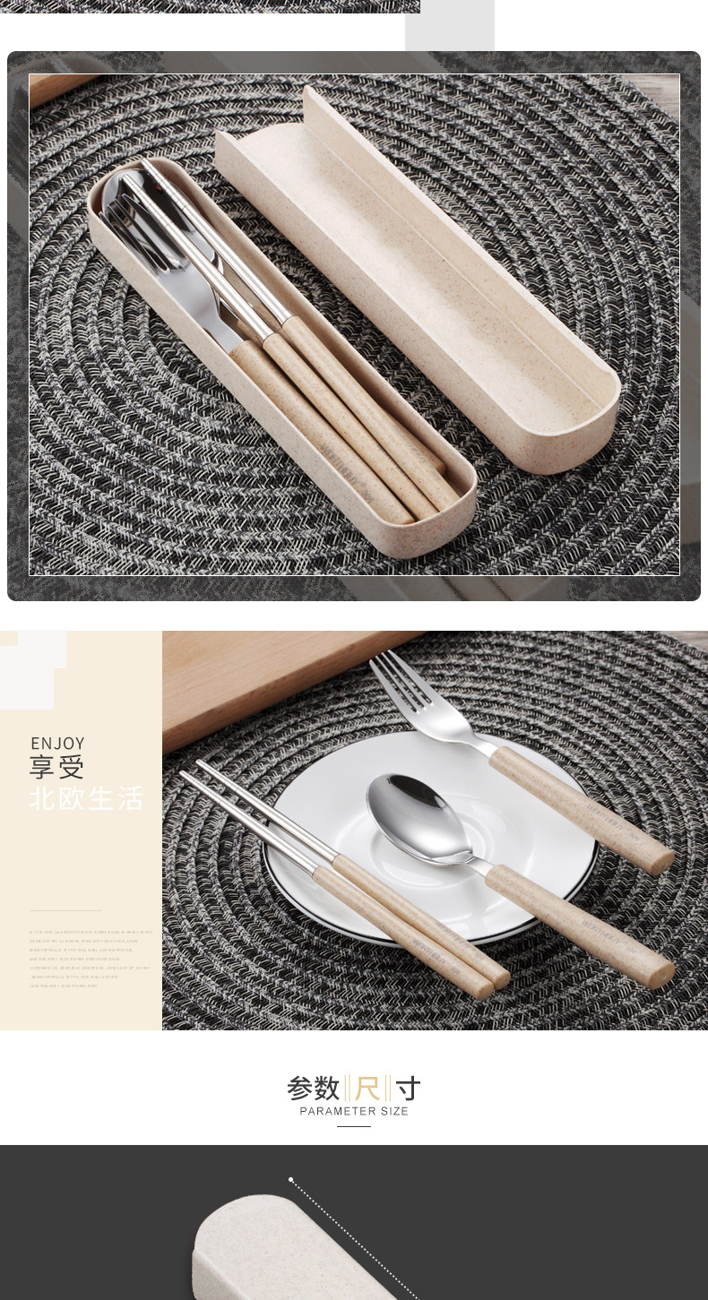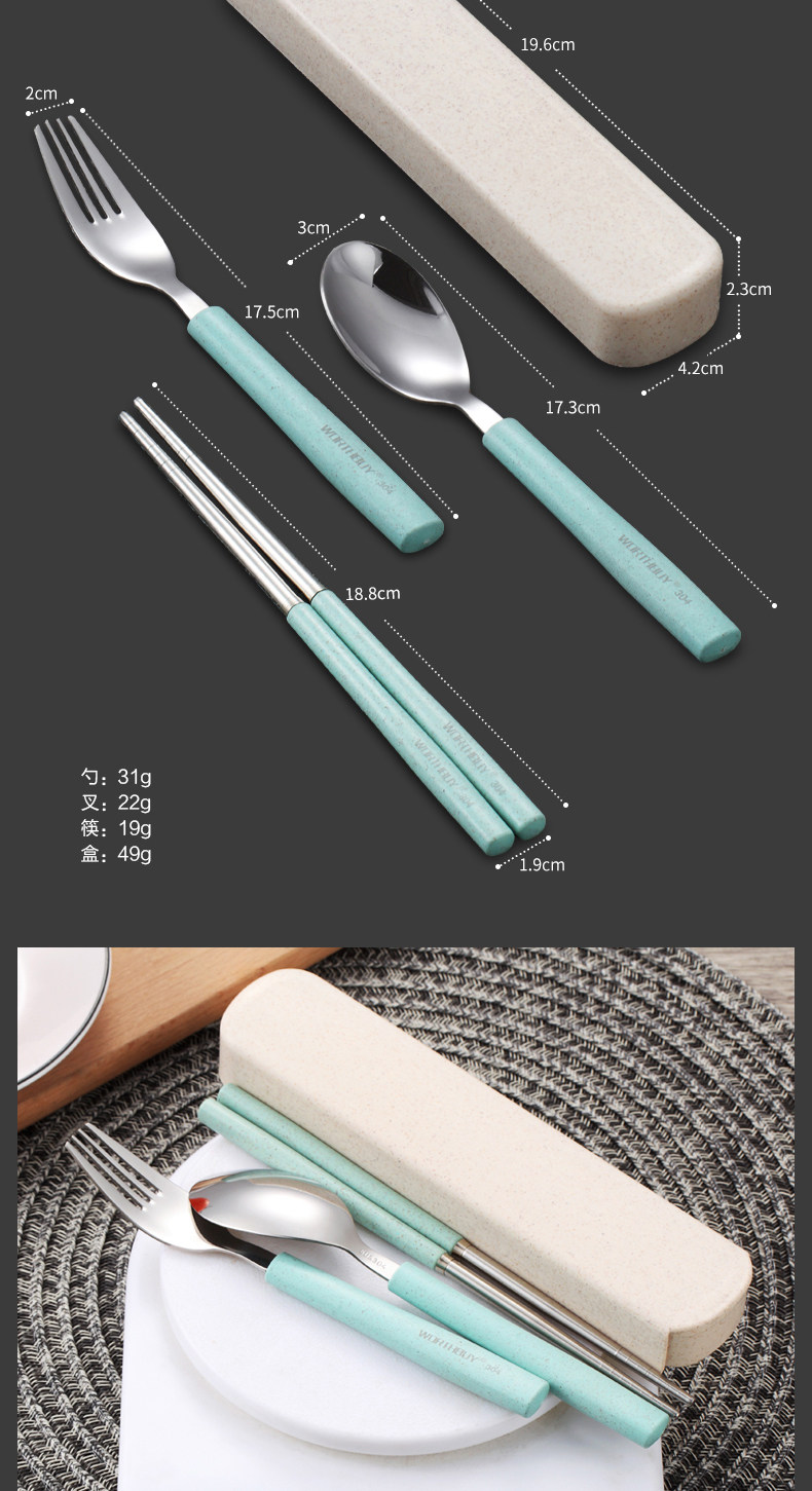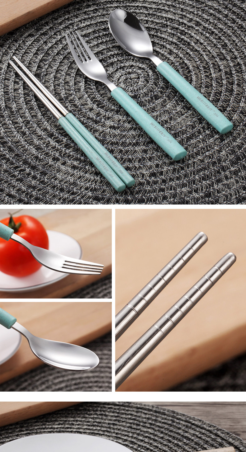304便携餐具不锈钢勺子筷子叉子套装三件套学生儿童盒子长柄式