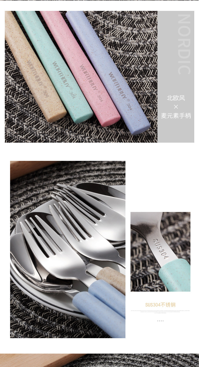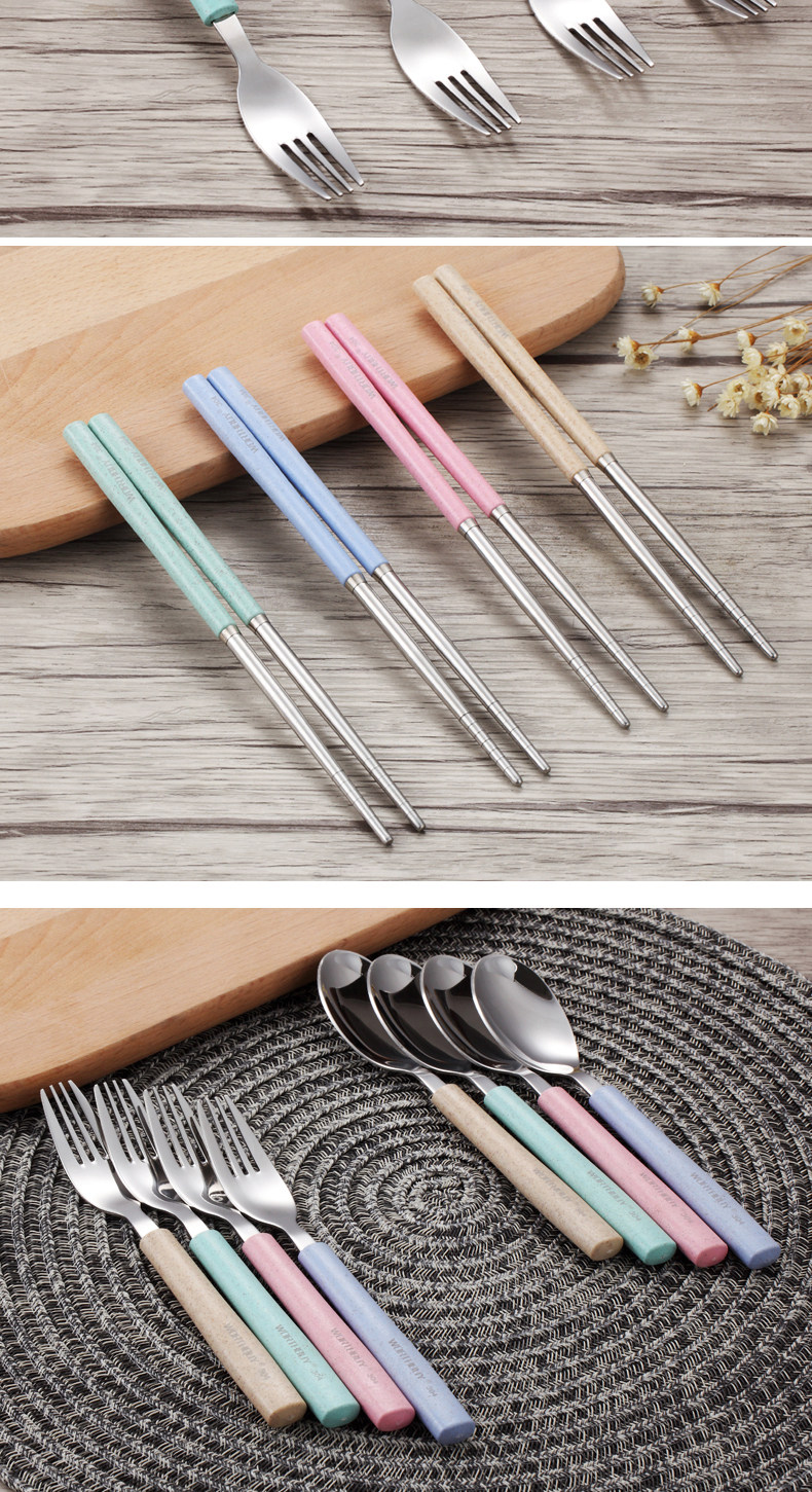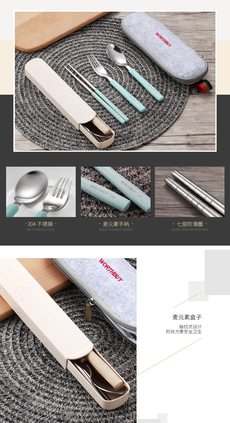 304便携餐具不锈钢勺子筷子叉子套装三件套学生儿童盒子长柄式