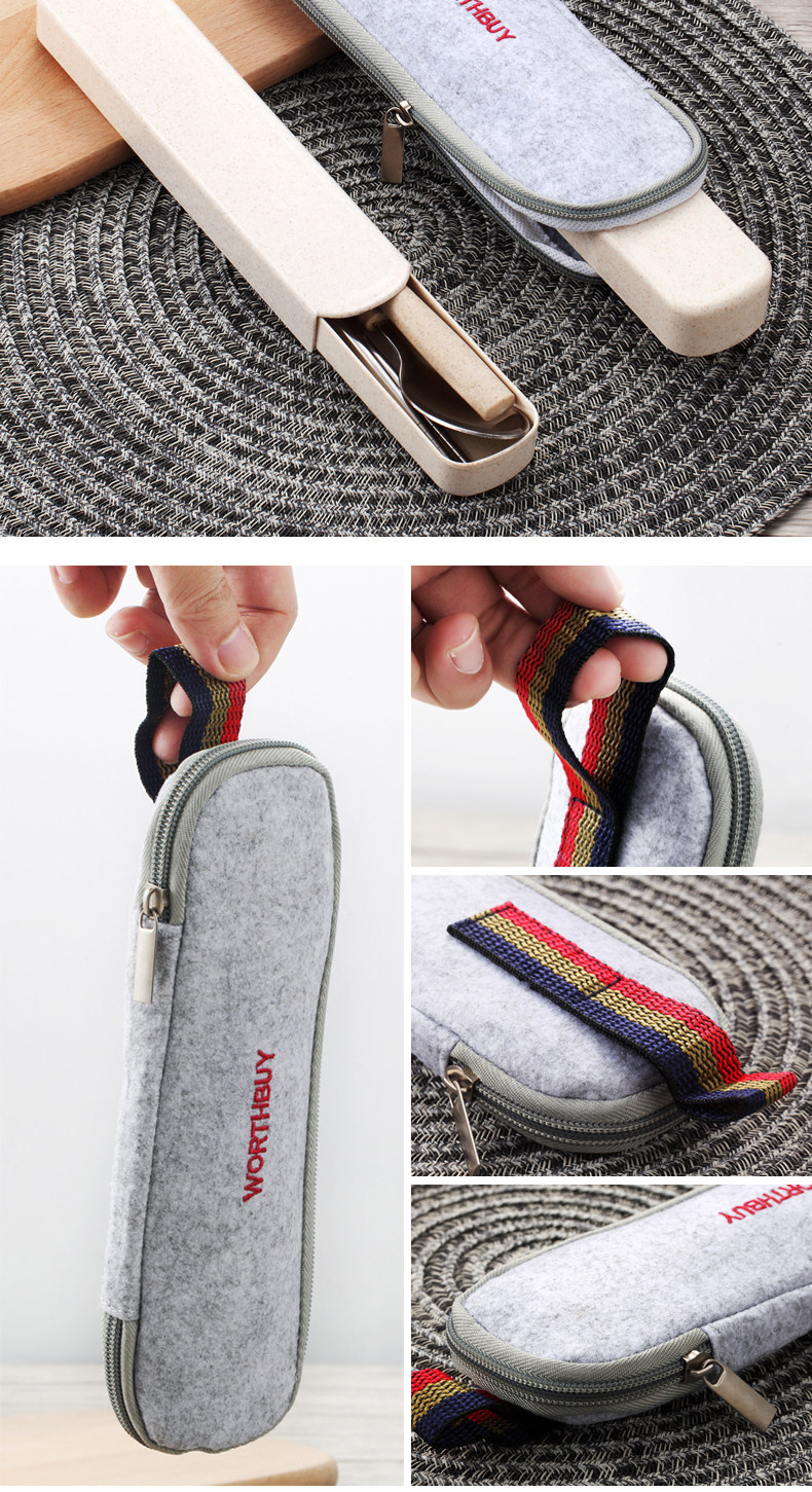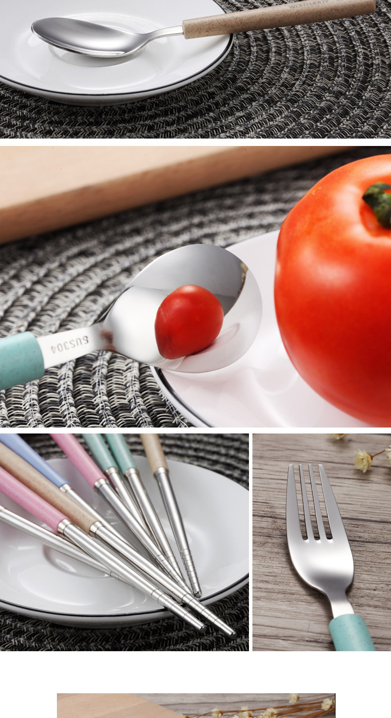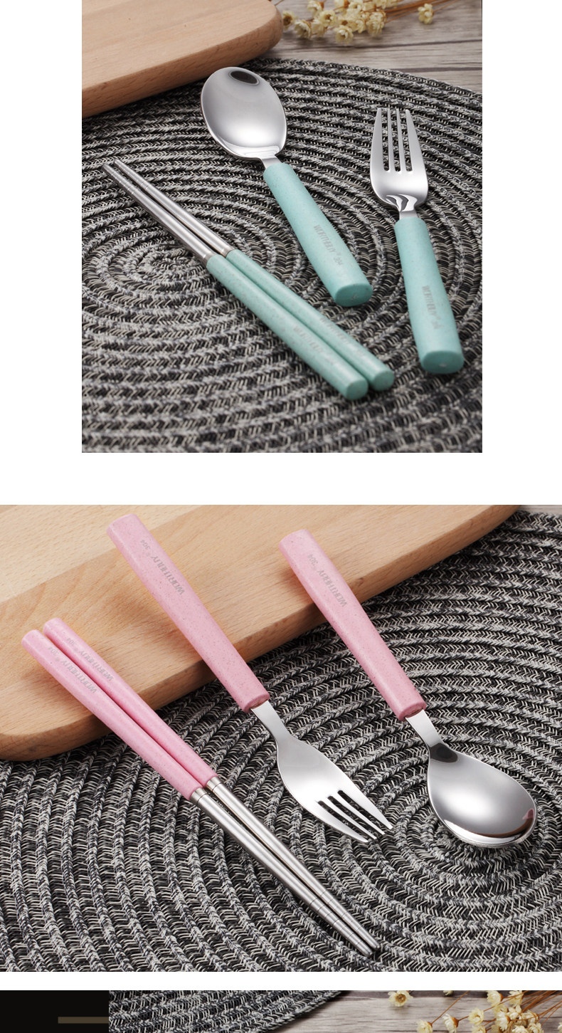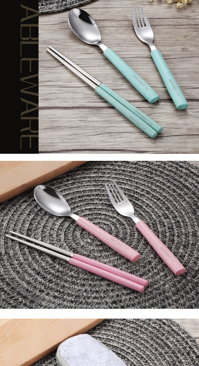 304便携餐具不锈钢勺子筷子叉子套装三件套学生儿童盒子长柄式