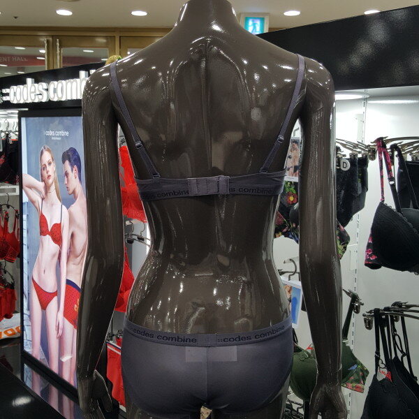 그레이 색상에 브랜드 로고 아웃밴드로 디자인된 코데즈 브라 팬티세트 입니다. 팬티 뒷면은 햄라인으로 바지나 원피스 착용시 힙선을 매끈하게 잡아주는 제품 입니다.
