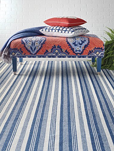 Company C Ticking Stripe 2' X 3' Accent Rug, Indigo