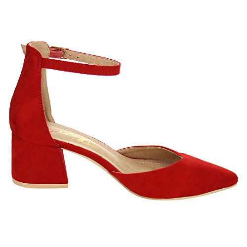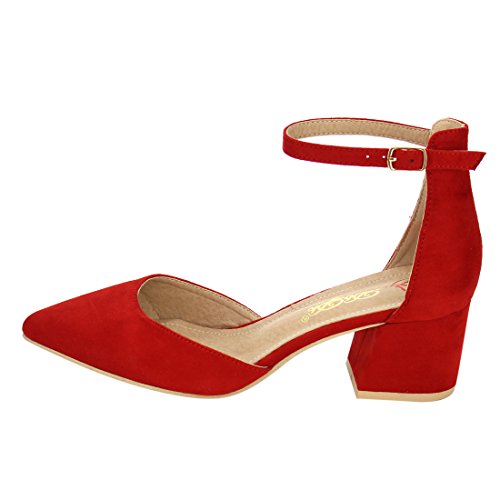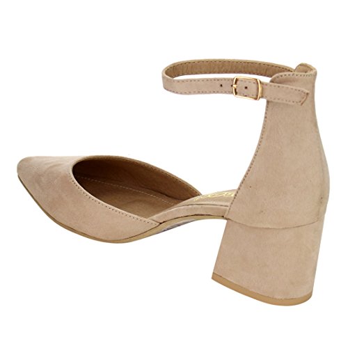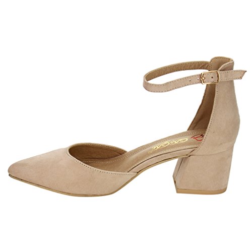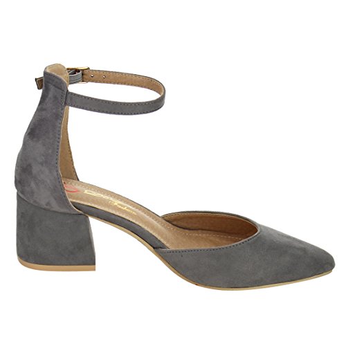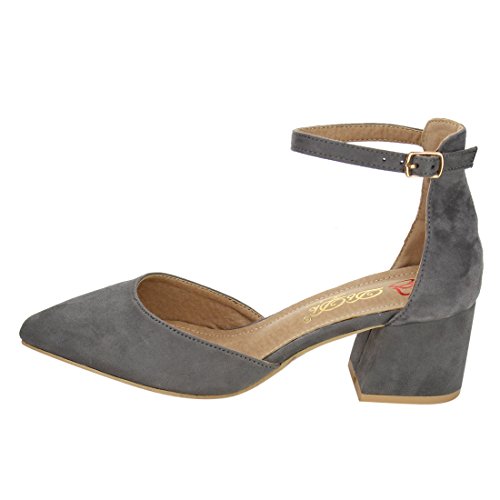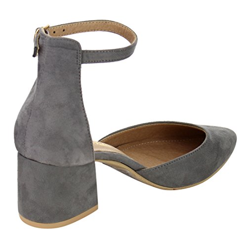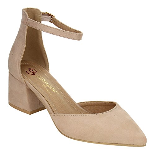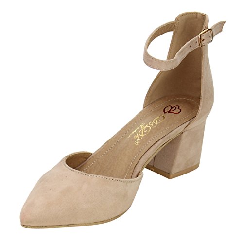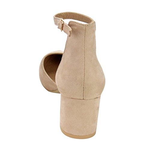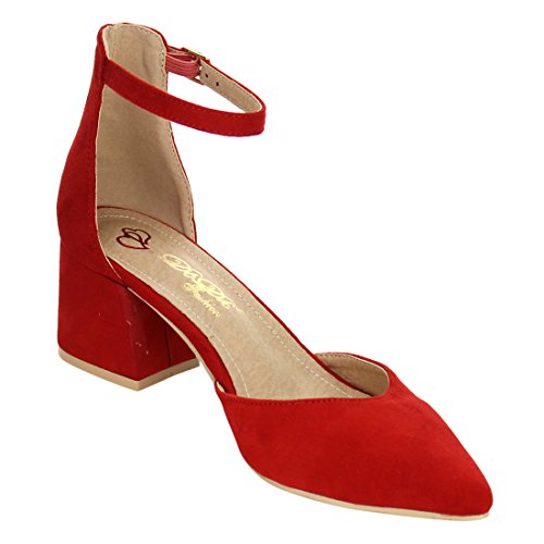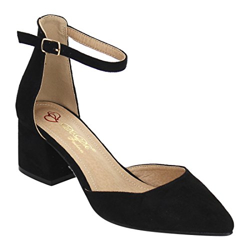(DbDk)/Women's/Pumps/DIRECT FROM USA/DBDK FK72 Women's Buckled Ankle Strap Dorsay Mid High Block Heel Pump