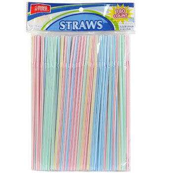 -. Title : The Home Store Multicolored Flexible Plastic Straws, 180-ct. Pack