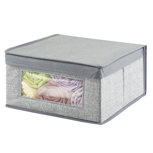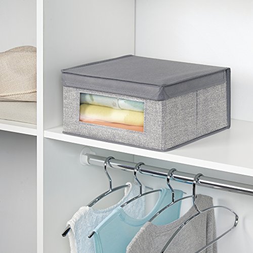 mDesign Fabric Closet Storage Organizer Box for Clothing, Shoes, Handbags, Jeans - Medium, Gray