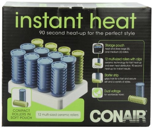 -. Feature : Compact setter in a soft fabric pouch / Ion Shine technology / Heats up in 90 seconds / Includes 12 patented design rollers: 8 large, 4 medium / Unique starter strip