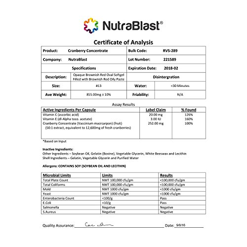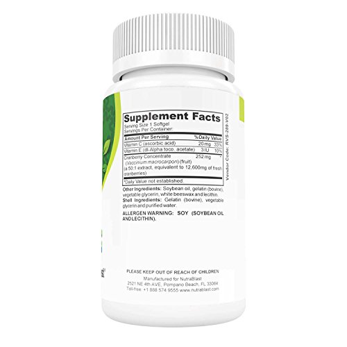-. Title : NutraBlast Cranberry Concentrate 12600Mg with Vitamin C & E - Non-GMO - Supports Urinary Tract, Immune System, Antioxidant, and Dental Health - Made in USA (60 Softgels)