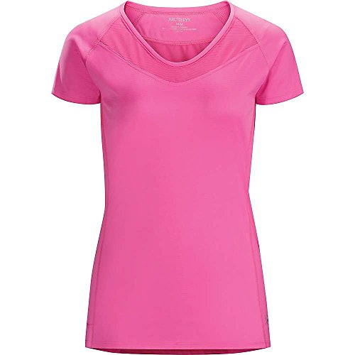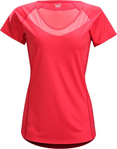 FEATURES of the Arcteryx Women's Kapta Short Sleeve Top Endoguage fabric is lightweight for quick drying and has good moisture management with excellent next to skin feel. (20 g lighter than Crystalis) Endoligh mesh fabric has excellent moisture management and is used throughout the back to provide venting. (40 g lighter than Libro mesh) Slight V-neck with Endoligh mesh panel at neck provides rapid venting Regular fit through torso provides off the body fit for comfort and mobility; shaped hem line Narrow flatlock seam construction minimizes seam Pocket on back hip has zipper with semi autolocking zipper sliderFeature