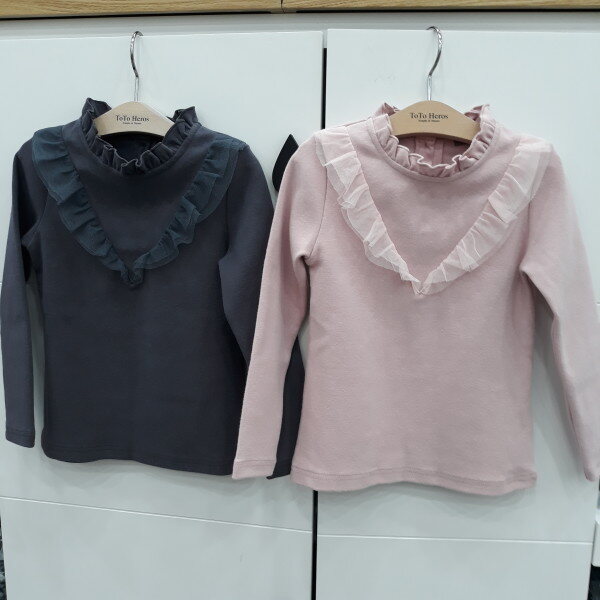 따뜻한기모원단으로 목부분프릴이 예쁜 티셔츠입니다