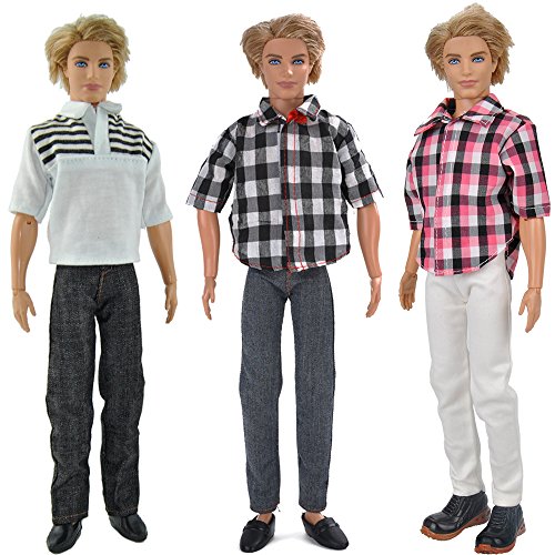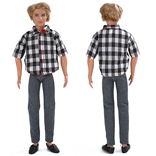 -. Title : E-TING 3 Sets Casual Wear Plaid Doll Clothes Jacket Pants Outfits for Ken Barbie Dolls