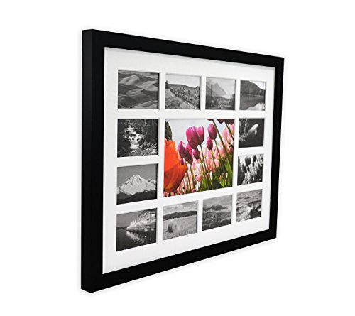 -. Binding : Kitchen -. Brand : Golden State Art -. Color : Black -. EAN : 4903543187008 -. Feature : Photo inserts hold twelve 2.5"x 3.75" photos (Opening size: 2.15"x3.25") and one 5" x 7" photo. (Opening size: 4.5"x6.5") / Or display 12x16 photo (without mat) & 3 hangers for vertical and horizontal hanging options. / It comes with wooden glass frame and acid-free beveled mat. / Overall Frame size: 17 x 13 x 0.85 inches; 0.75'' wide and 0.85'' thick moulding / Perfect for HOME or OFFICE Wall Photo Frames, Picture Frames,Wall Frames. -. IsAutographed : 0 -. Label : Golden State Art -. Manufacturer : Golden State Art -. Model : 2016B-GWF-1216-13 -. PackageQuantity : 1 -. ProductGroup : Home -. ProductTypeName : HOME -. Publisher : Golden State Art -. Size : 12X16-13 -. Studio : Golden State Art -. Title : Golden State Art, 13-Opening 12x16 Collage Photo Wood Frame with White Mat & Real Glass, Black