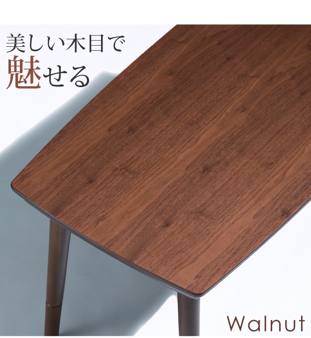 材質:天板-天然木化粧繊維板(ウォールナット)、脚部-天然木(ラバーウッド)・ウレタン塗装