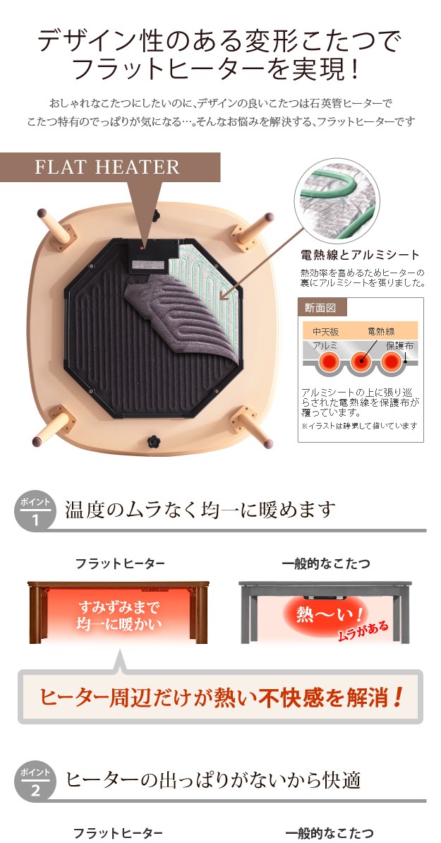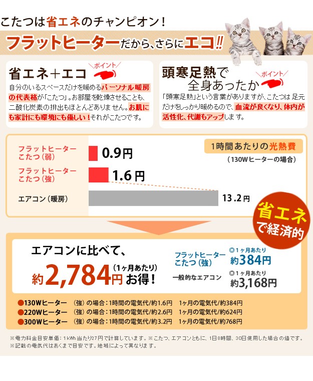 フラットヒーター(130W・中間スイッチ式)、コード長2.8m