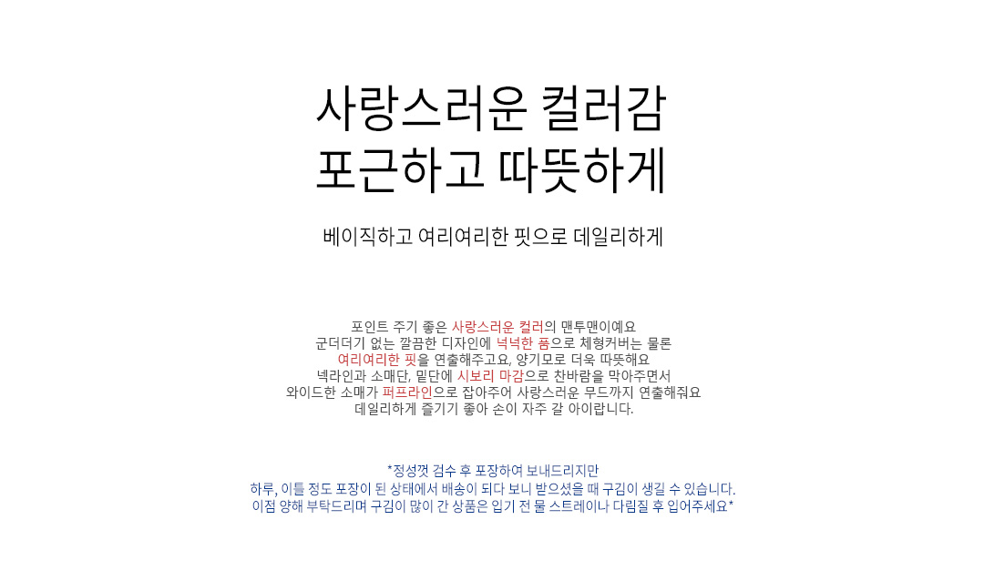 .같은 사이즈라도 체형에 따라 핏감이 조금씩 다를 수 있습니다.