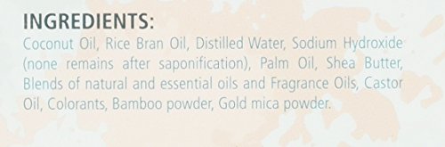 - Key Ingredients - Coconut Oil, Rice Barn Oil, Palm Oil, Shea Butter, Blend of Lemongrass-Sage- Lilac essential oils and Fragrance Oils, Castor Oil, Bamboo powder, Gold mica powder