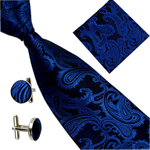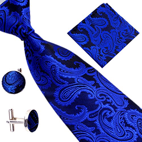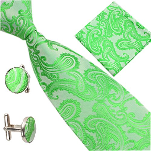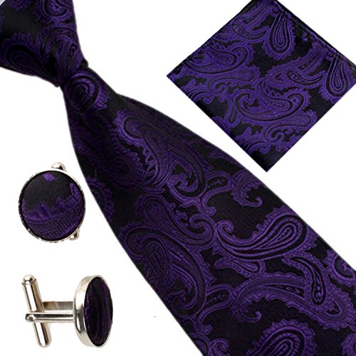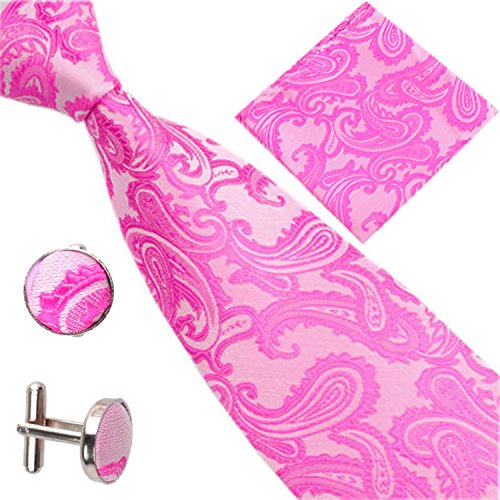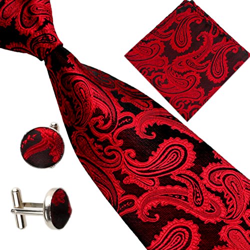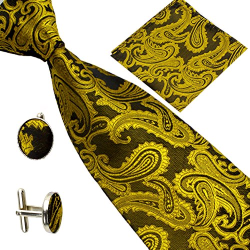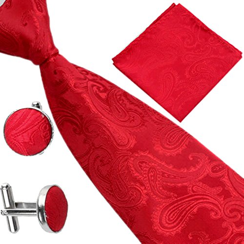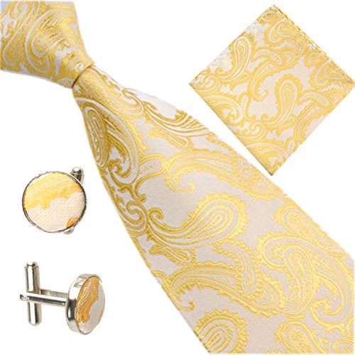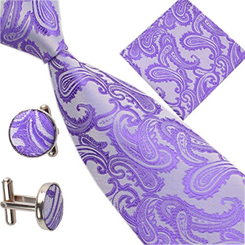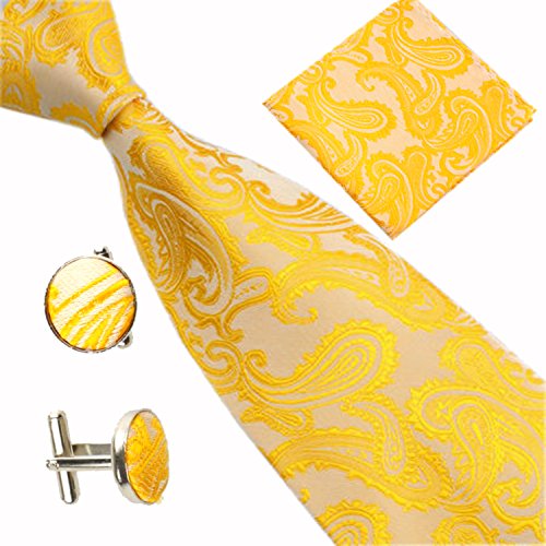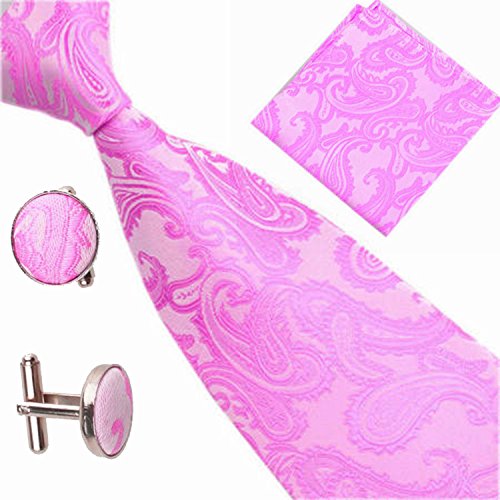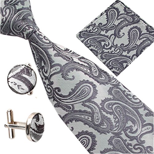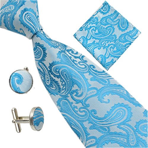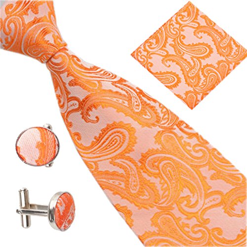 | (SXON)/Accessories/Ties/DIRECT FROM USA/Necktie Pocket Square Cufflinks Three Piece Paisley Jacquard Eye Catching Boys |