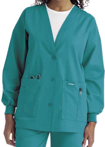 Landau Women's V-Neck Cardigan Style Warmup Solid Scrub Jacket