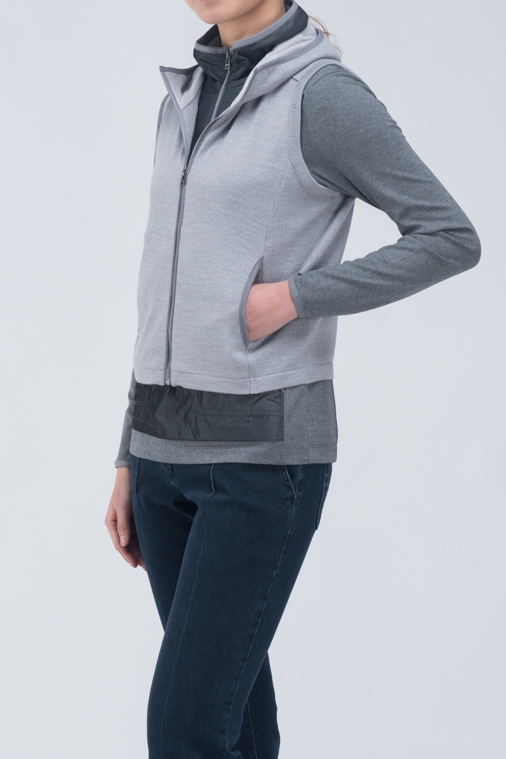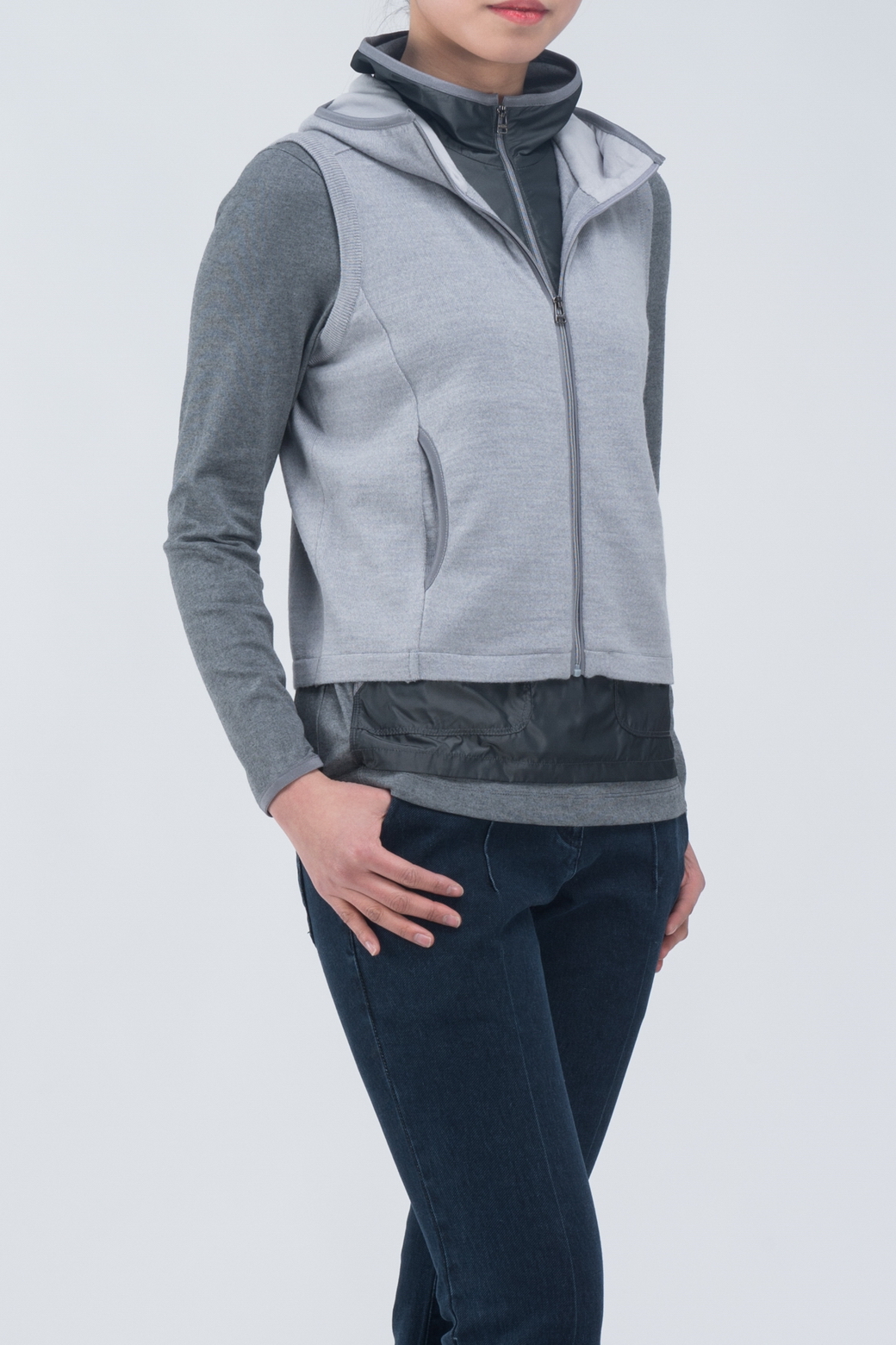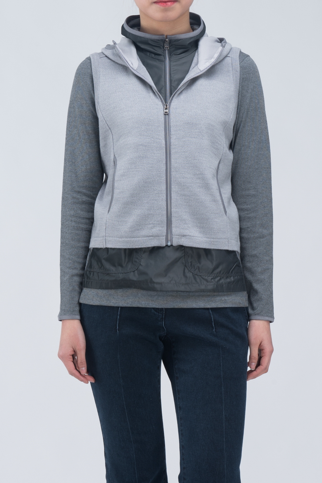 - 일체형 미니 후드 디테일로 스포티한 멋을 연출함.