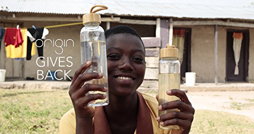 PREMIUM BOTTLES WITH A PURPOSEOur fashionable glass water bottles are perfect for juices, sodas, water and sport supplements. We believe that even drinking from perfectly designed water bottles will add to your daily joys. We also believe that joy should be shared to those who are less fortunate. Origin has partnered with a non-profit that drills water wells at village schools in rural Ghana. YOUR PURCHASE MAKES AN IMPACT! WHAT WE DOWe don't think it's enough to just make premium glassware. 2% of Origin revenue funds solutions that address the most persistent needs of those living in extreme poverty. We take a holistic approach to our giving with a focus on health and education.WHO WE FUNDOur current grantee is Empower Playground, a non-profit that drills water wells and installs merry-go rounds that generate electricity at rural Ghanaian primary schools. HOW WE DO ITThe water wells eliminate the need to drink from dirty streams and ponds and reduces preventable disease & under-five mortality rates for thousands of families throughout Ghana. The merry-go-rounds charge reading lanterns while the school students play on it. Students take these lanterns home after school so they can do their homework. Thousands of Ghanaian villages have no power or clean water and your impact is literally life-saving.THE GLASSBreak-resistant Borosilicate glass is stronger than your average glass bottle. It is capable of handling extreme cold or hot liquids without compromising the integrity of the bottle.THE SLEEVEThe bottle is protected with a soft, food grade silicone protective sleeve from tumbles and dings. The sleeve is removable and is completely dishwasher safe while on the bottle.THE DISHWASHERWe recommend placing the bottle on the top dishwasher rack and recommend that you hand wash the lid.Feature