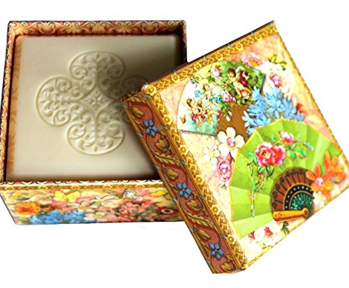 Punch Studio 5.3 oz Verbena Scented Soap in. Glitter Embellished Keepsake Box, Victorian Fans 51082