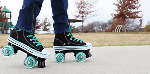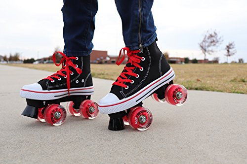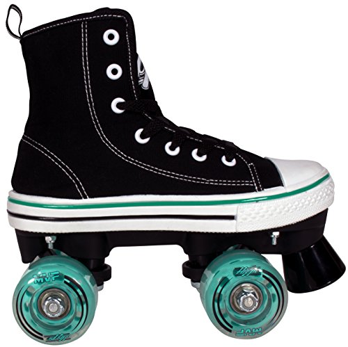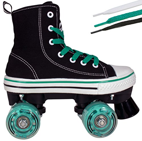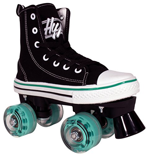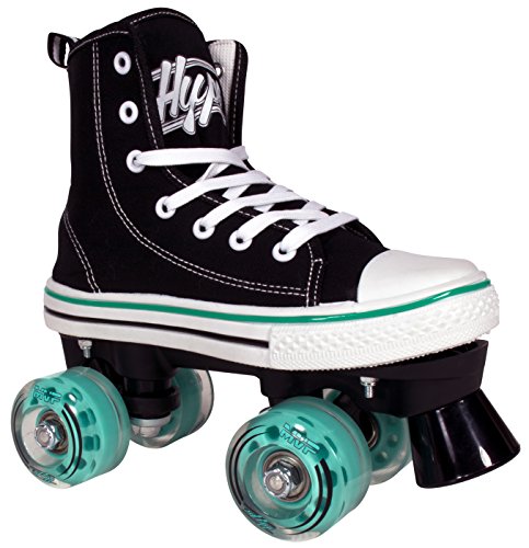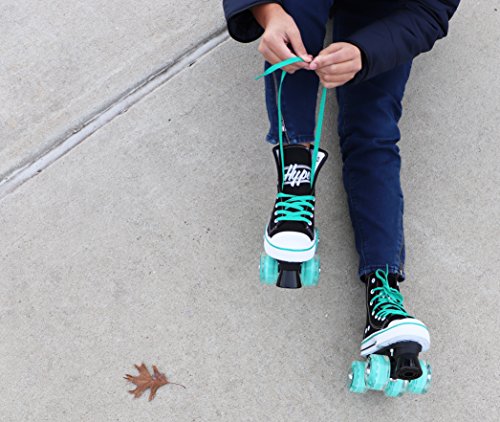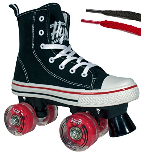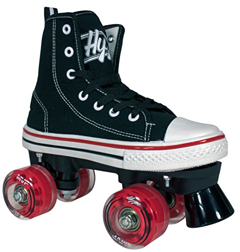STAND OUT WITH HIGH TOP SNEAKER SKATES The HYPE MVP combines that classic and timeless high top sneaker look with the durability and functionality of a well-built quad skate. Why sacrifice style for quality when you can get the best of both worlds? TRUE FIT SURE SIZE Purchasing skates online can be risky business. Other skate companies often misjudge their sizes and what should be a sure fit, ends up too tight or too big. We’ve all been there, and that’s why HYPE MVP skates always fit right and are true to size. Say goodbye to sore feet and inconvenient returns! SAFETY FIRST! We don’t take shortcuts when it comes to safety. From boot to base, each skate is crafted with precision using high-quality, pressure-tested materials. The front toe braking system handles smooth or sudden stops in all conditions, rain or shine. SKIP STRAIGHT TO THE FUN PART Give your kid the confidence boost they need to skate like a pro. The HYPE MVP is a wobble-free, easy to use quad skate that beginners can instantly enjoy. Skip the steep learning curve and make riding fun fast! FUN ANYWHERE These skates can take your kid wherever they desire, without falling apart. The HYPE MVP features high rebound urethane wheels made for both indoor and outdoor fun. KIDS LIKE COLORS Each pair of skates come with three sets of laces (Black, White Red or Teal) because kids love colors and you love easy replacements. 0 |
