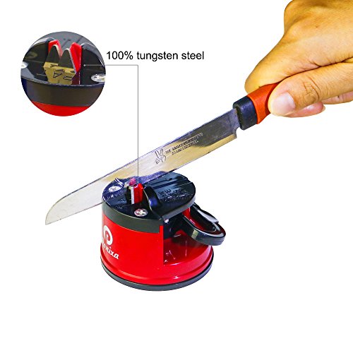 Multi-function knife sharpener :You can use it to sharpen any type of staright knife quickly and easily . It has a strong suction pad mount which helps to make safe for use.