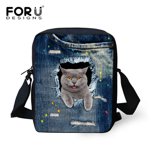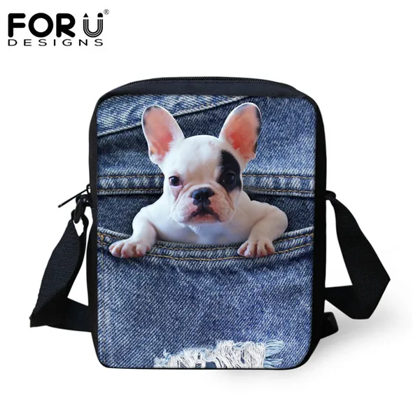 Type2:Denim Pocket Pet Pug Dog Pattern Women Casual Messenger Bags
