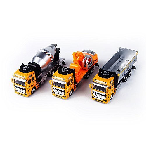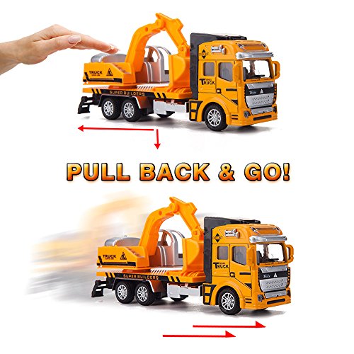 ◆ Friction powered(no battery needed). Just pull back and go. Construction vehicles would roll on their own for a long distance on smooth surface.Easy to play with kids.