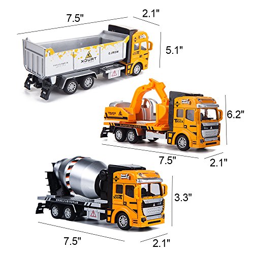 ◆ Great variation. 3 different construction trucks included. An excavator, a dump truck and a cement truck. All kinds of pretend play could be simulated.