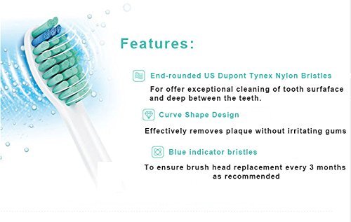 -. Feature : High quality Generic Replacement Brush Heads made with end-rounded US Dupont Tynex Nylon Bristles for offer exceptional cleaning of tooth surface and deep between the teeth. / UNI-FAM toothbrush heads are proven to reduce gingivitis up to 100% better than a manual toothbrush ,effectively removes plaque without irritating gums. / UNI-FAM Replacement Brush Heads Compatible with Philips Sonicare FlexCare, EasyClean, HealthyWhite, Diamond Clean and Kids Brush Handles. (Complete list in Description below) / Blue indicator bristles fade halfway so you know when to replace your brush.(Dentists recommend replace the brush head at least once every 3 months) Dental Association. / 8 Replacement brushes provide your family with high quality effective brushing,100% Satisfaction Guaranteed or Your Money Back.