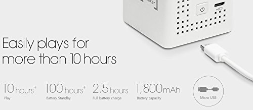 Feature : "Smallest but Powerful!" The only one of its kind to have a powerful "6Watt" output for its miniature size(45mm x 45mm x 45mm; 107g; 6W driver) / Compatible with all Bluetooth and "NFC" enabled devices through easy connection, no additional wires requrired / 10 hours of constant playback with up to 100 hours of battery standby and outstanding connection range of up to 33 feet (10M) / Perfect to pair with the SK UO Smart Beam mini projector when you want to enjoy full high-def sound quality on the go / Includes1 speaker, carrying pouch, and Micro USB cable for charging[http://www.uo.co.kr/smartspeaker.app/en]