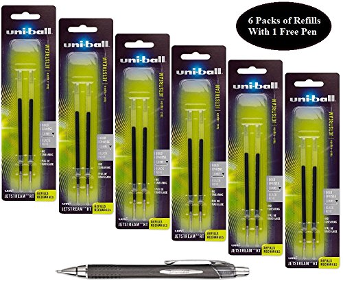 This deal includes 6 packs of Jetstream RT Retractable Roller Ball Pen refills and one free Jetstream RT Retractable Roller Ball Pen. Unique hybrid ink offers the smoothness of a gel with the quick-drying properties of a ballpoint. Ideal for left-handers because the ink dries so fast, there's little chance of smudging. Uni Super ink is specially formulated to become trapped in paper, helping prevent criminal check washing and other document alteration. Archival-quality, acid-free ink is fade- and water-resistant. Retractable tip, embossed grip and stainless steel accents.