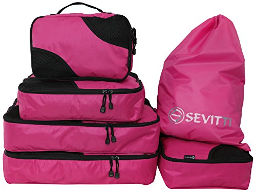 -. Brand : Sevitti -. Department : unisex-adult (novelty and lage only) -. Feature : 5 packing cubes set with bonus laundry bag / Helps you to stay organizes / High quality material / Keeps clothes wrinkle free / Lifetime warranty -. ProductGroup : Apparel -. ProductTypeName : LAGE -. Size : XL, L, M, S -. Title : 5 Packing Cubes Set plus Shoe Bag/Laundry Bag - Travel Lage Organizers