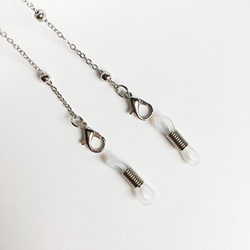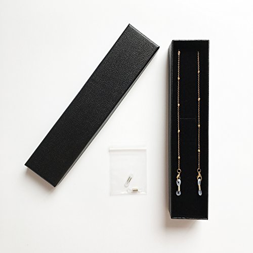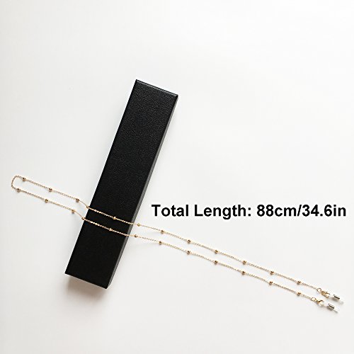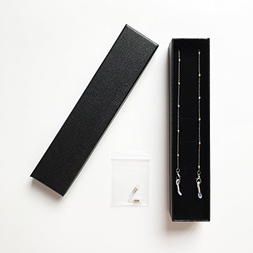 -. Feature : METAL CHAIN - The metal chain is durable and will last for a long time. Please be careful to untangle when getting tangled up. Please use a soft, dry cloth to wipe off sweat and dirt form the eyeglasses chain. / BEAD CHAIN - The beads are stuck in the eyeglasses chain to show your elegance and nobleness, which make the ordinary eyeglasses chain special and luxury. / EYEGLASSES HOLDER - Matched with snap hook, the silicone loop holds the eyeglasses and the eyeglasses chain from sliding successfully. Two eyeglasses holders are free for change. / GOLD & SILVER - Two colors are available, gold and silver. You can choose your favorite color or even both, whatever you like. It is your choice. / GIFT BOX - The classical black imitation leather gift box makes the eyeglasses chain like a necklace to be ready for the people who wear glasses.
