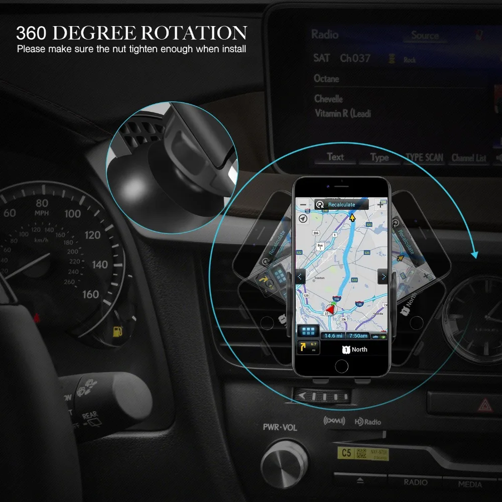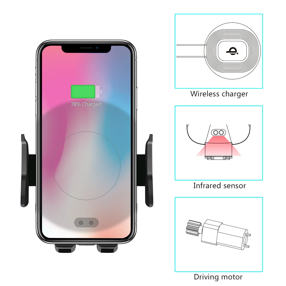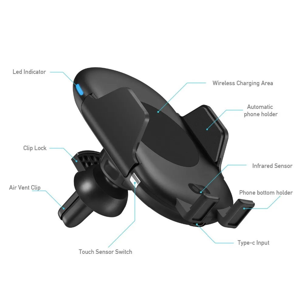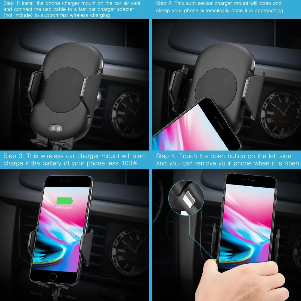 Function 2:Air Vent Car Holder, Fast Wireless Charging,Automatic Infrared Sensor