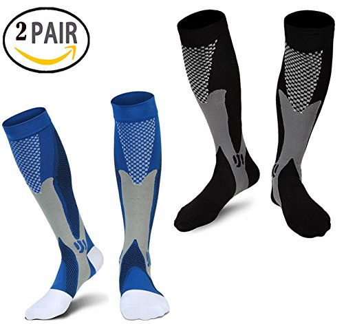 2 PACK Graduated Compression Socks for Men Women,Best for Running,Nurses,Shin Splints,Flight Travel & Maternity Pregnancy